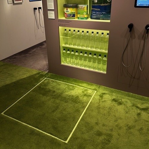 Auch Wasserverbrauch wurde thematisiert. Für einen Quadratmeter Rasen verbraucht man 20 Liter Wasser pro Woche. Die Ausstellung stellt anschaulich das Verhältniss von Wassermenge zu Fläche dar.